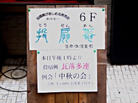 投扇菴さんのはからいにより、初めての瓦落多連例会が実現。『中秋の会』という風流な名前も付けていただく。 参加者は、寺菴さん、其扇庵匠胡さん、浜ちゃん、i井ちゃん、少年投士、ヘヴンさん、バンマス、にょいっち、館長。